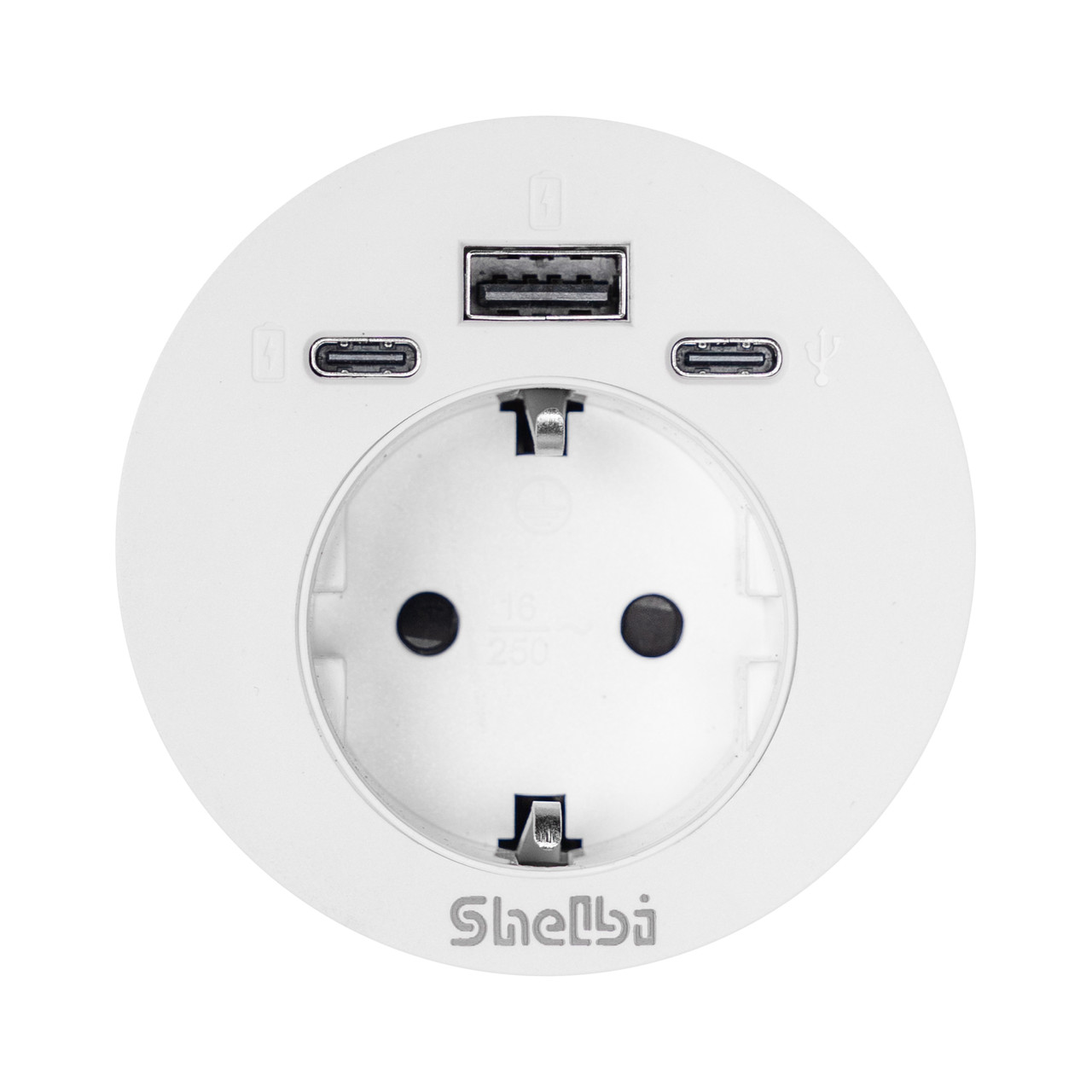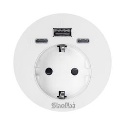 Shelbi STV-1S-1U-2C-W Наст. розеточный блок, 1 розетки 220В, 1 USB, 2 Type-C (зарядка/проходная), белый