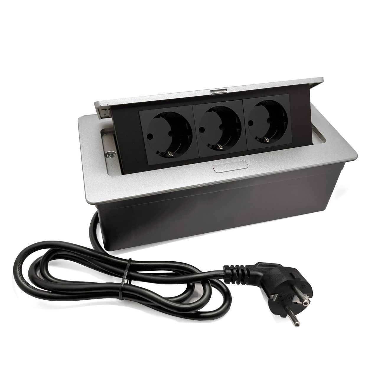 Shelbi Настольный бокс на 3 розетки, шнур 1,5м, серебро