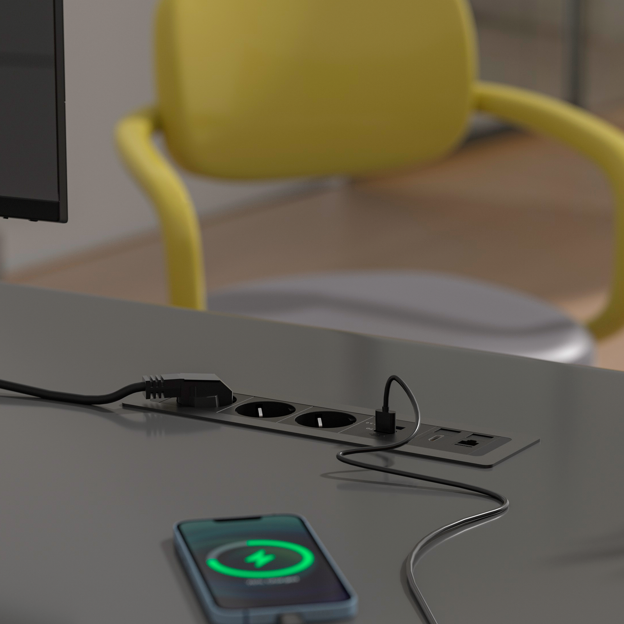 Shelbi Настольный встраиваемый блок на 3 розетки 200B, USB, Type-C, RJ45, HDMI, чёрный
