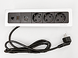 Shelbi Настольный встраиваемый блок на 3 розетки, USB, Type-C, RJ45, HDMI, серебро