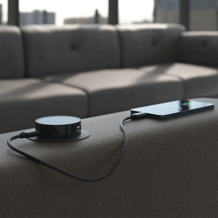Shelbi Беспроводная зарядка, USB, Type-C для установки в стол, чёрный