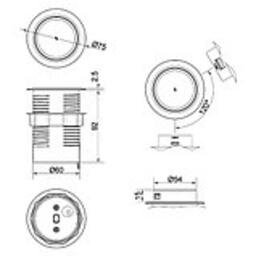 Устанавливается в столешнице диаметром 60 мм, крепление стопорным кольцом.