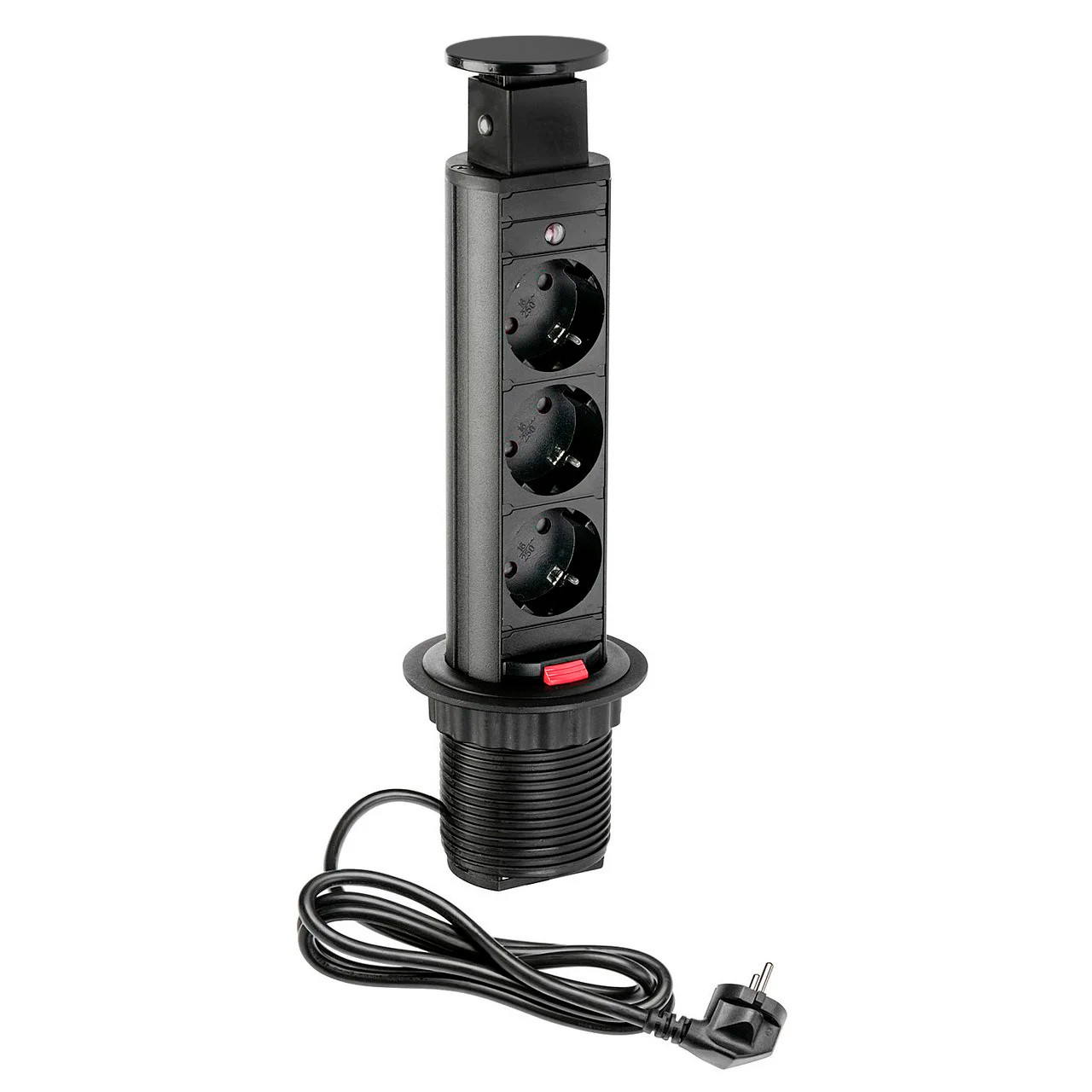 Описание: Выдвижной настольный розеточный блок Shelbi STV-3S-B - это инновационное решение для гибкого проектирования рабочего пространства. Он предназначен для фиксированного монтажа в столешнице и полностью скрывается в ней, обеспечивая аккуратный внешний вид и безопасное использование.