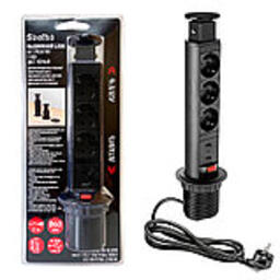 Выдвижной настольный розеточный блок Shelbi STV-3S-2U-B (3 розетки, 2 USB, черный)