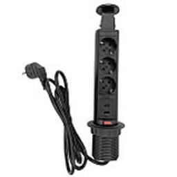 Shelbi Выдвижной настольный розеточный блок на 3 розетки 200B, 2 USB розетки, чёрный (STV-3S-2U-B)
