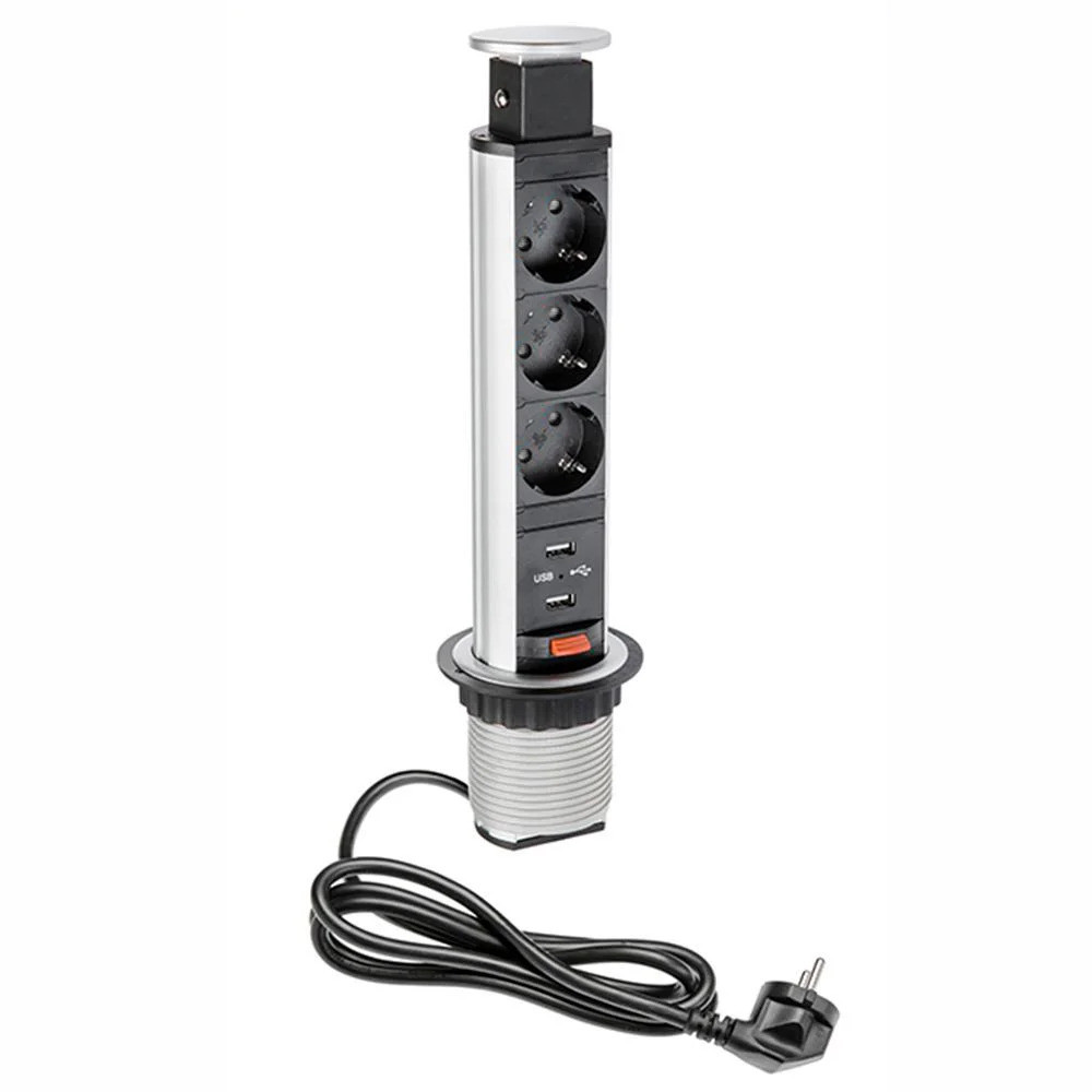 Выдвижной настольный розеточный блок Shelbi STV-3S-2U-S — это современное и удобное решение для организации рабочего пространства. Стильный корпус из алюминиевого сплава делает его прочным и долговечным, а механизм скрытой установки позволяет сохранить эстетичный вид стола.