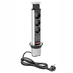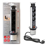 Shelbi Выдвижной настольный розеточный блок на 3 розетки 200B, 2 USB розетки, серебро (STV-3S-2U-S)