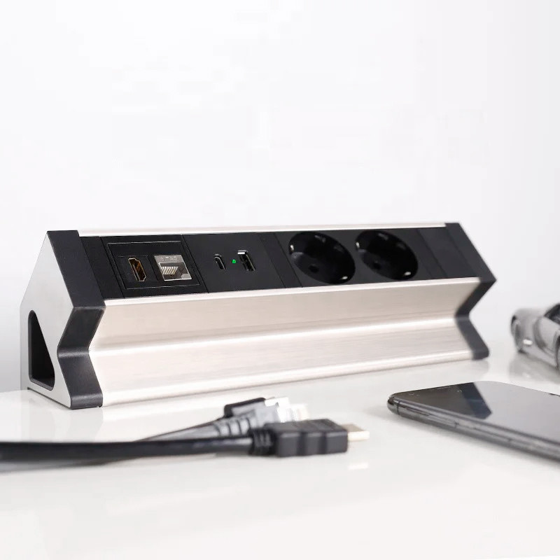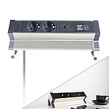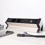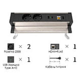 Shelbi Настольный блок на 2 розетки 200B, USB, Type-C, RJ45, HDMI чёрный-серебро