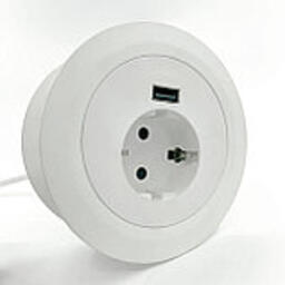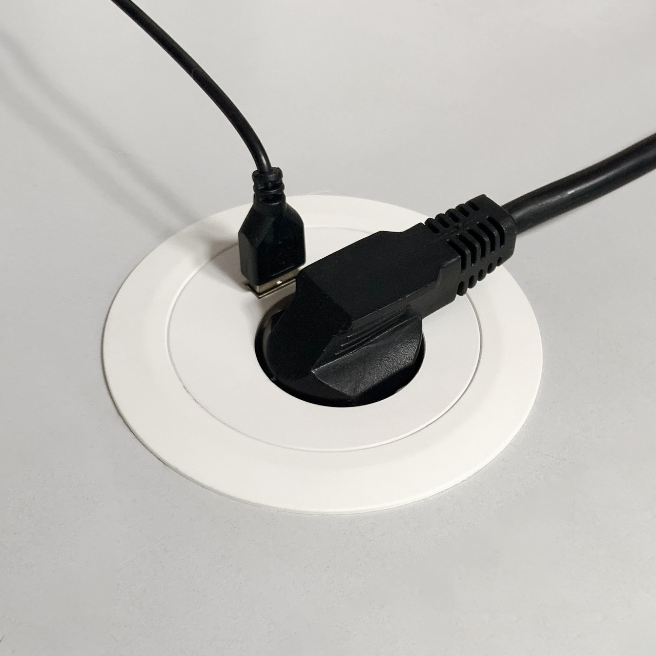Настольный блок с соединительным кабелем и USB розеткой, для фиксированного монтажа в столешнице. Монтаж выполняется через отверстие в столешнице Ø 60 мм.