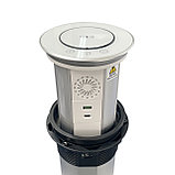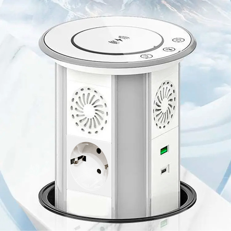Выдвижной автоматический настольный розеточный блок на 3 розетки, USB, Type-C, Bluetooth speakers + WiFi + Touch + Voice, Беспроводная зарядка, Белый