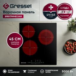 ✅ Электрическая варочная панель Gressel U45D29S100 — это идеальное сочетание мощности и удобства. С шириной 45 см и общей мощностью 5000 Вт, она оснащена тремя конфорками, включая одну с регулируемой зоной расширения. Это позволяет использовать посуду разных размеров и обеспечивает быстрый нагрев, что особенно удобно для больших кастрюль и сковород.✅ Управление с помощью Slider control делает настройку температуры легкой и точной, предлагая 9 уровней нагрева. Встроенный таймер на 99 минут помогает контролировать время приготовления, автоматически отключая конфорку по истечении заданного времени и подавая звуковой сигнал.⚠️ Для повышения безопасности предусмотрена блокировка панели управления, что предотвращает случайные нажатия и делает устройство безопасным для семей с детьми. Индикатор остаточного тепла информирует о том, что поверхность еще горячая, что помогает избежать ожогов.✅ Закаленное стекло варочной панели не только придает ей стильный вид, но и облегчает уход, так как легко чистится. Gressel U45D29S100 — это отличный выбор для тех, кто ценит функциональность, стиль и безопасность в одном устройстве.✅ Электрическая варочная панель Gressel U45D29S100 — это идеальное сочетание мощности и удобства. С шириной 45 см и общей мощностью 5000 Вт, она оснащена тремя конфорками, включая одну с регулируемой зоной расширения. Это позволяет использовать посуду разных размеров и обеспечивает быстрый нагрев, что особенно удобно для больших кастрюль и сковород.✅ Управление с помощью Slider control делает настройку температуры легкой и точной, предлагая 9 уровней нагрева. Встроенный таймер на 99 минут помогает контролировать время приготовления, автоматически отключая конфорку по истечении заданного времени и подавая звуковой сигнал.⚠️ Для повышения безопасности предусмотрена блокировка панели управления, что предотвращает случайные нажатия и делает устройство безопасным для семей с детьми. Индикатор остаточного тепла информирует о том, что поверхность еще горячая, что помогает избежать ожогов.✅ Закаленное стекло варочной панели не только придает ей стильный вид, но и облегчает уход, так как легко чистится. Gressel U45D29S100 — это отличный выбор для тех, кто ценит функциональность, стиль и безопасность в одном устройстве.
