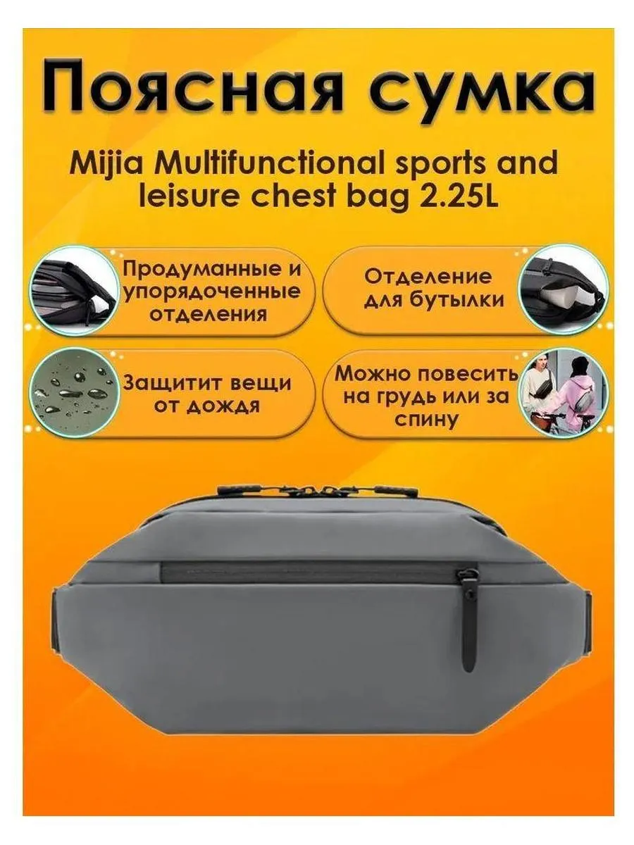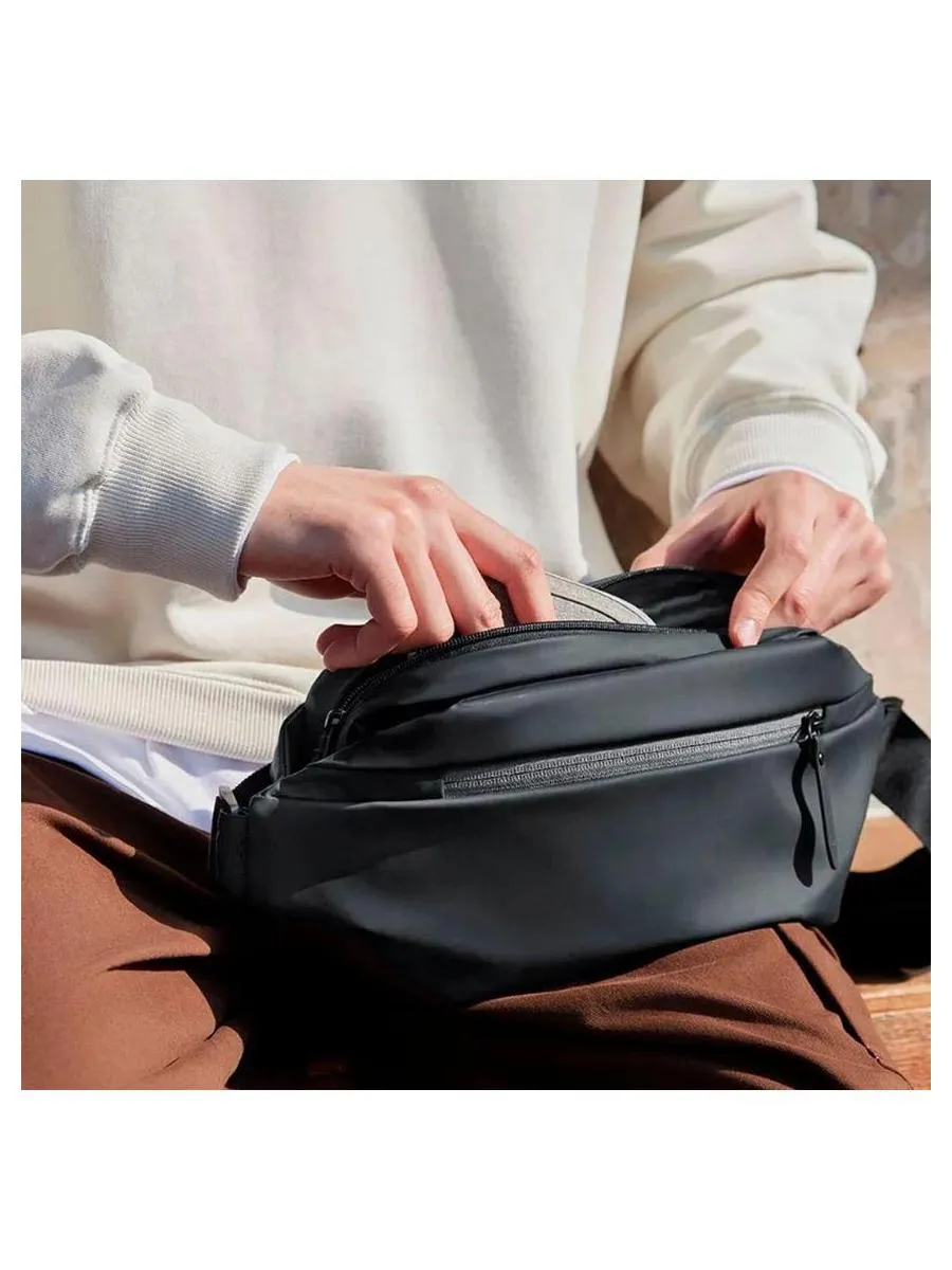 Поясная сумка Xiaomi Sports Chest Bag надежная и долговечная сумка, которую можно носить на поясе или на груди. Сумка изготовлена из крепкого материала, противостоящего разрывам благодаря системе ripstop. Кроме того, материал сумки защищает от попадания воды во внутреннее пространство вовремя дождя. Сумка имеет надежную фурнитуру, которая отлично закрывает карманы и не пропускает влагу внутрь сумки. Поскольку подобные сумки часто используют городские велосипедисты, наружная молния имеет светоотражающие элементы, которые делают владельца более заметным в темное время суток. Поясная сумка, несмотря на небольшие габариты, довольно вместительна. Аксессуар подойдет для переноски документов, денег, ключей, телефона и других важных мелочей. Станет незаменимой для прогулки, дальней поездки, повседневного ношения. Полная безопасность для личных вещей. Основная молния сумки прикрыта тканью, поэтому злоумышленник не сможет незаметно проникнуть внутрь изделия. Выполнена из приятной бархатистой на ощупь ткани. Плотный материал сохранит целостность важных документов и мобильной техники. Украшена фирменным логотипом MI, размещённым на кожаной вставке. Ползунки также дополнены кожаными язычками для удобства открывания и закрывания отделов. На внешней стороне присутствует дополнительный карман. Прочный ремень с возможностью регулировки длины. Модель выполнена в спортивном стиле, она универсальна, подходит как для мужчин, так и для женщин. Аксессуар можно разместить на поясе, плече, спине или груди то, что нужно, чтобы освободить руки во время прогулки!