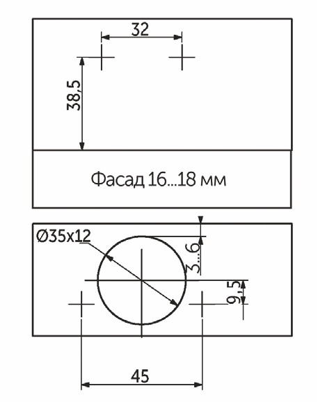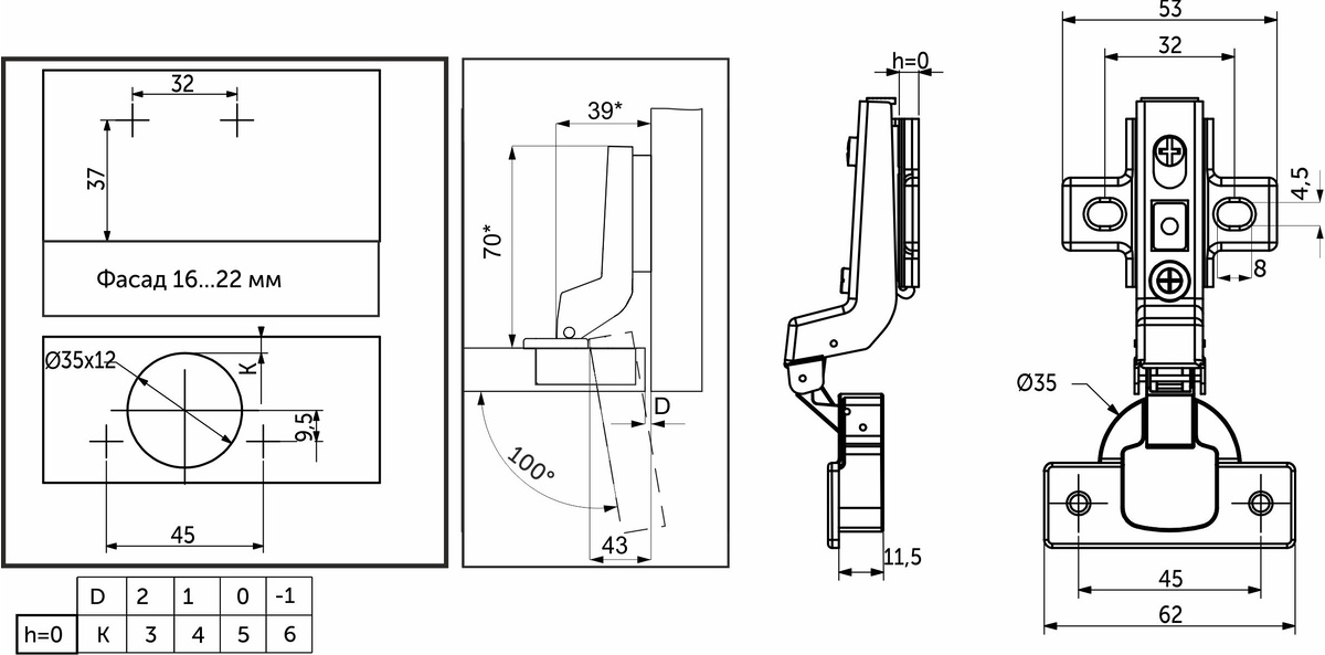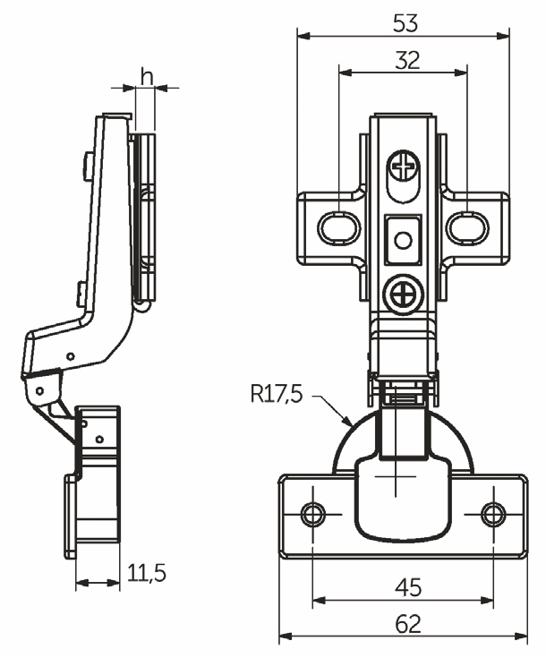 Петля внутренняя без пружины 45мм h0 clip-on AKS