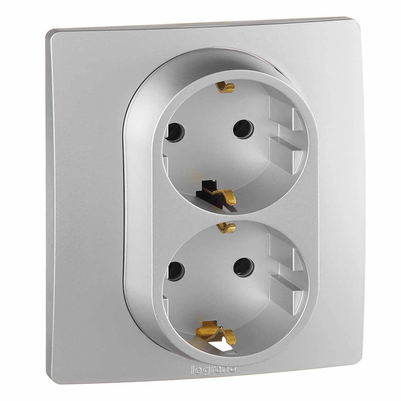 Розетка двойная с заземлением, алюминий, 672423 Legrand Etika