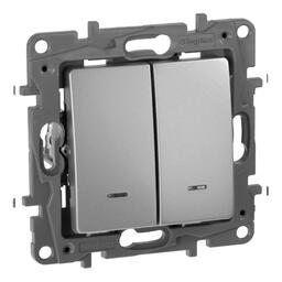 Выключатель 2х1-полюсный Legrand Etika 672404,10А, алюминиевый