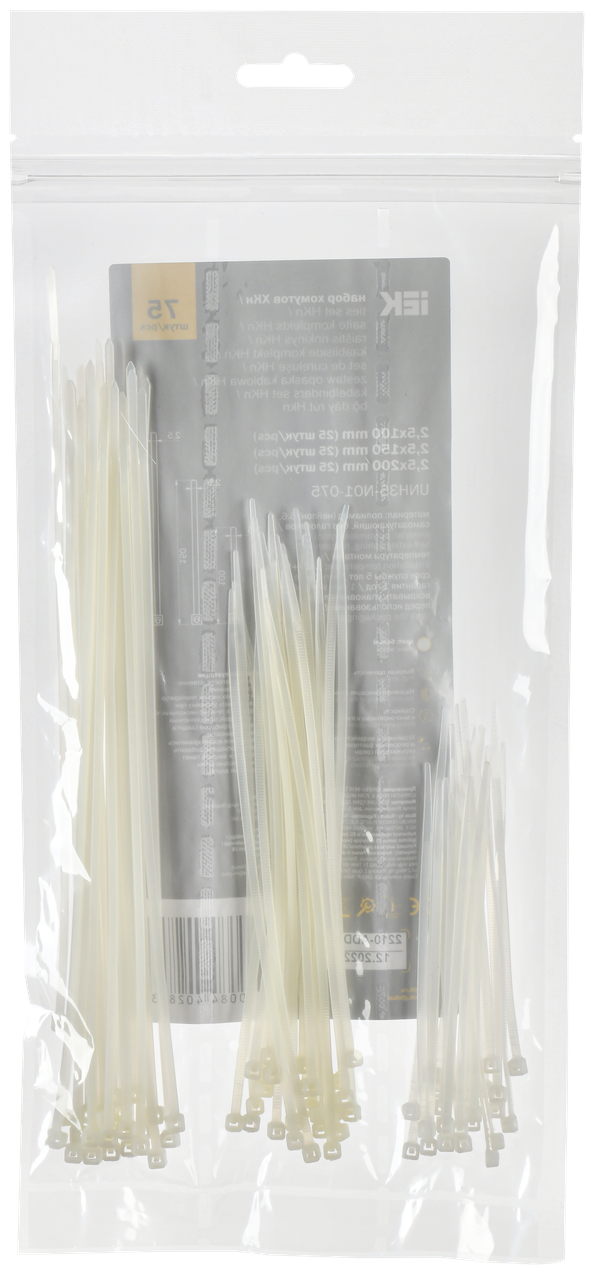 Набор хомутов 2,5х100; 2,5х150; 2,5х200 белые (75шт./упаковка) IEK