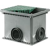 Предназначено для устройства наружного освещения и сигнализации, а также подвода двустенных труб к мачтам освещения, как под пешеходной зоной, так и под дорогой. Снизу устройства имеется два отверстия для труб диаметром 50 мм и одно отверстие для трубы диаметром 32 мм. Устройство изготовлено из высокопрочного меланаполненного полипропилена. Допустимая нагрузка на крышку – 12 кг/см².