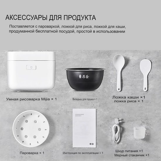 Mijia Induction Heating Rice Cooker 2 4L MFB2BM (с переходником на евровилку)