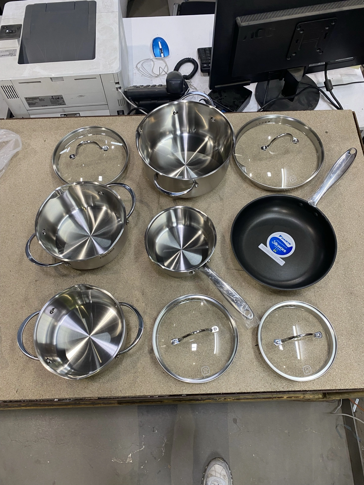 Состав комплектаКастрюли 18 см (1,9 л), 20 см (2,6 л), 24 см (4,7 л), ковш 16 см (1,3 л) со стеклянными крышками, сковорода 24 см