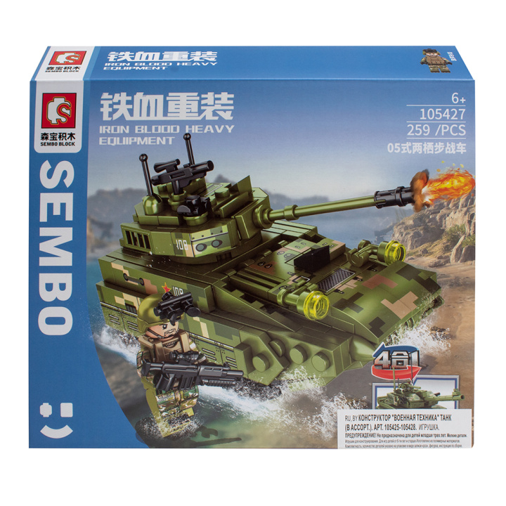 Конструктор подходит для детей от 6 лет и предлагает оптимальный уровень сложности — достаточно детализированный, чтобы увлечь ребенка, но при этом не слишком сложный для самостоятельной сборки. Элементы легко соединяются между собой, а четкая инструкция поможет избежать ошибок. Готовый танк обладает подвижными элементами, такими как вращающаяся башня и гусеницы, что делает игру еще более реалистичной и динамичной.