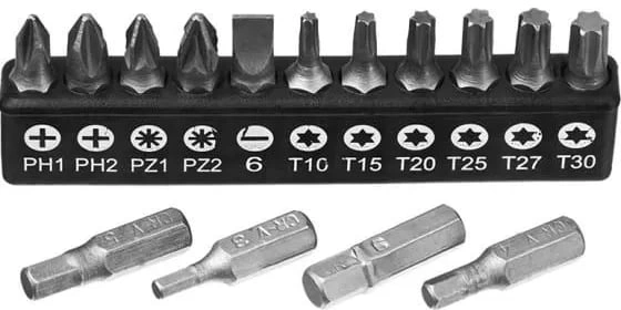 • Набор бит Torx, список TX 10, 15, 20, 25, 27, 30, 40