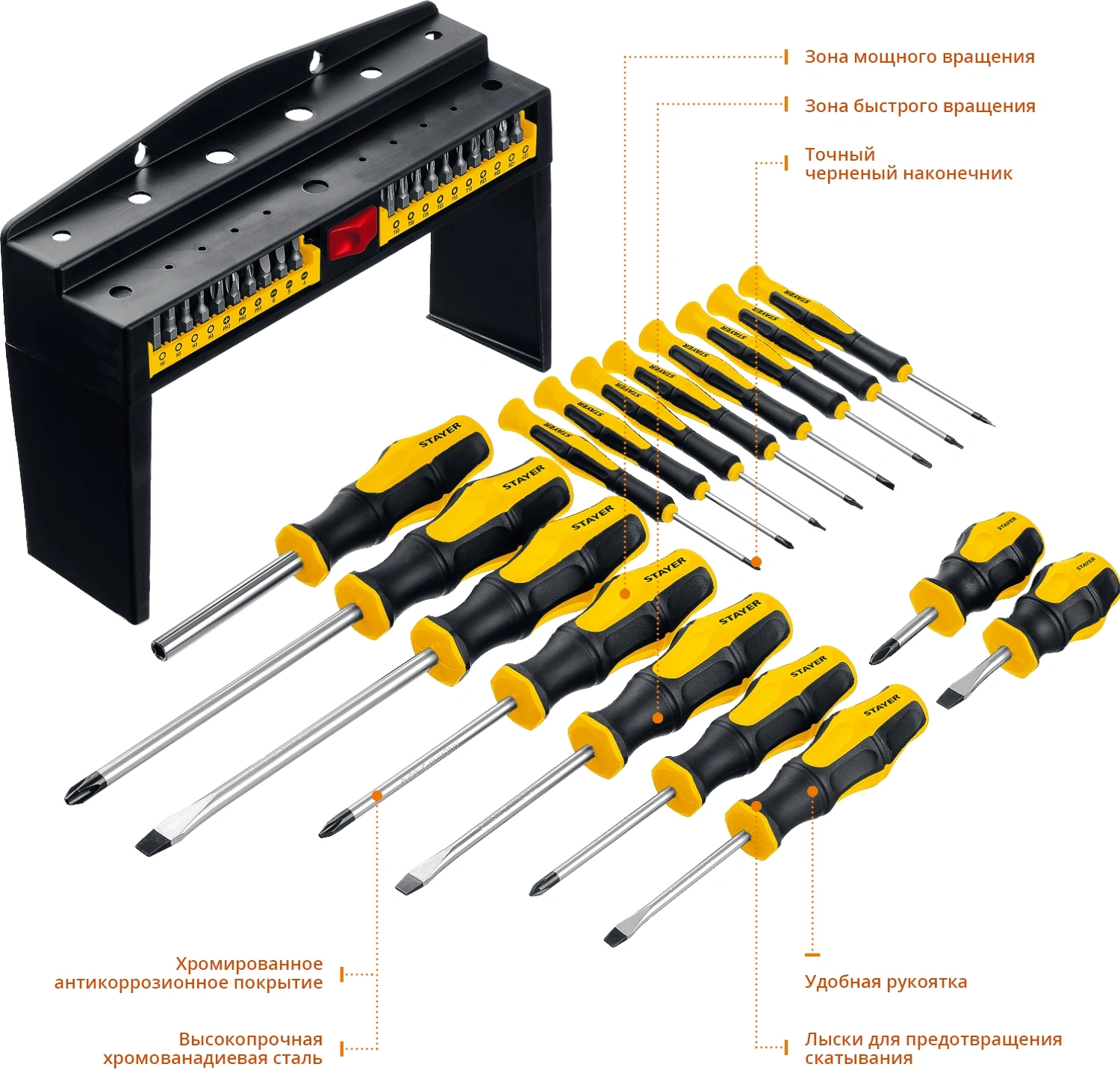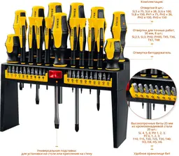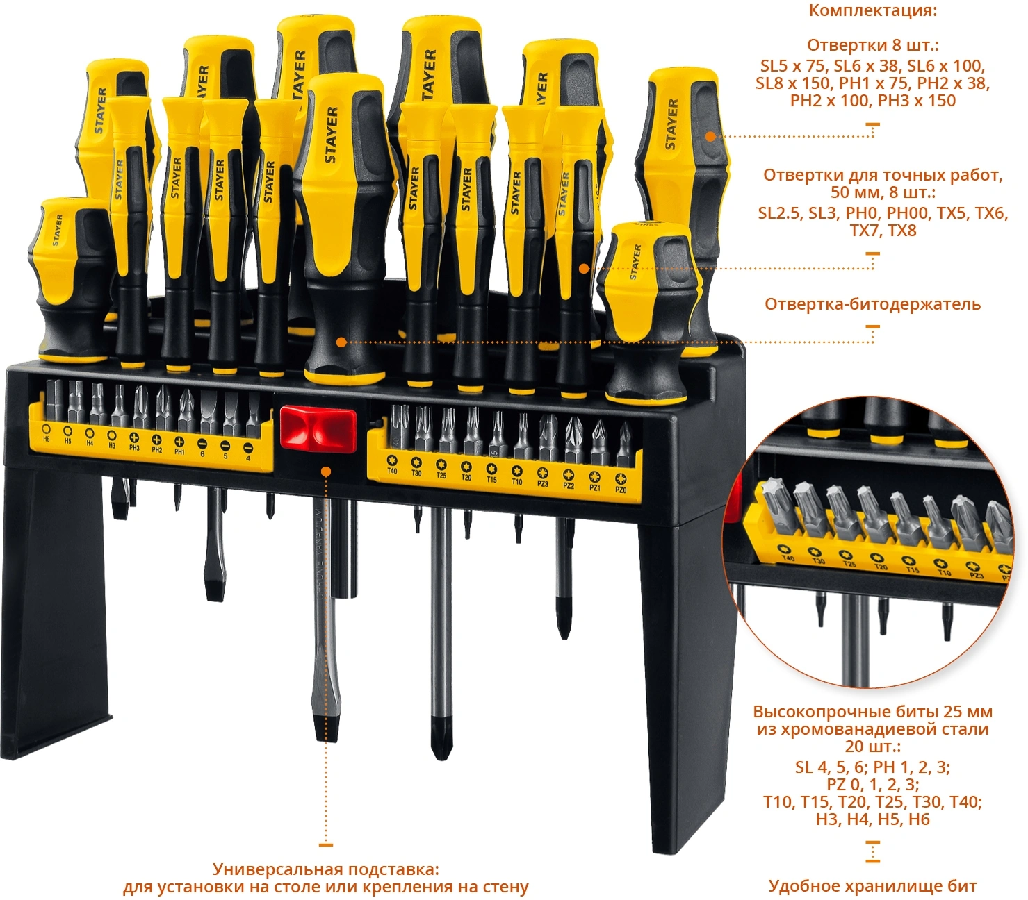 • Комплектация отверток отвертки PH (крестовый Phillips), отвертки SL (прямой), отвертки Torx (звезда)