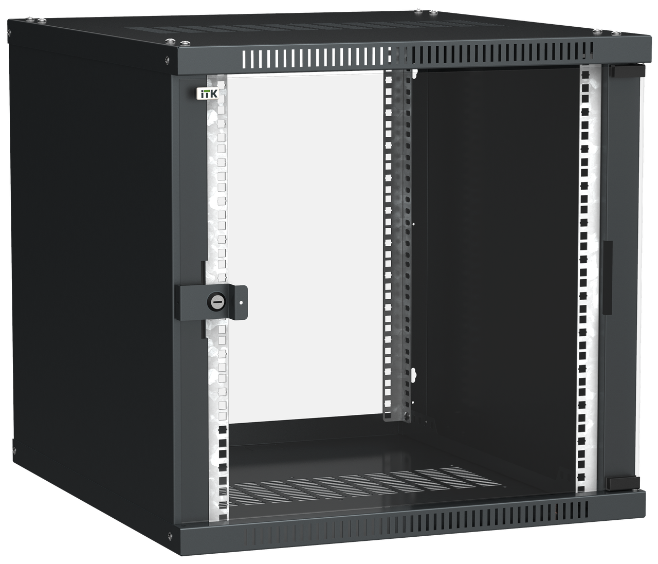 ITK Шкаф настенный LINEA WE 12U 600х600мм дверь стекло черный