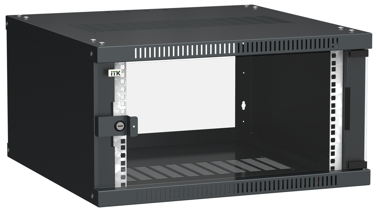 ITK Шкаф настенный LINEA WE 6U 600х600мм дверь стекло черный