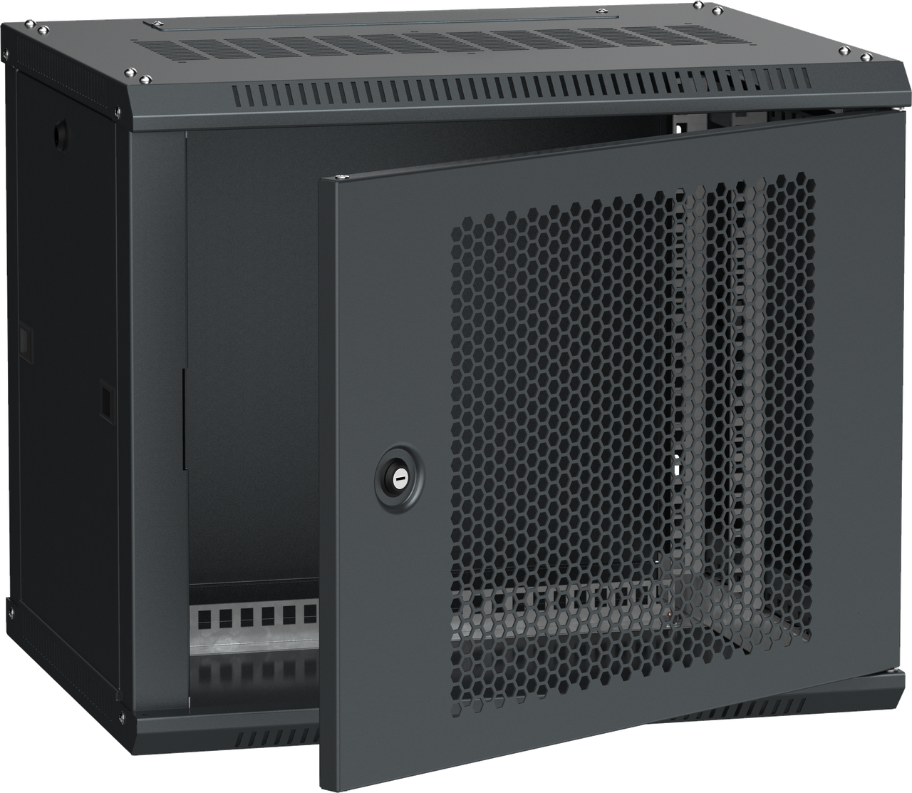 ITK Шкаф настенный LINEA W 9U 600х450мм дверь перфорированная RAL 9005
