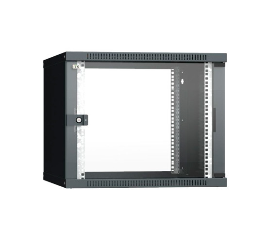 ITK Шкаф настенный LINEA WE 9U 550х350мм дверь стекло черный