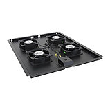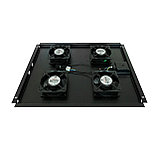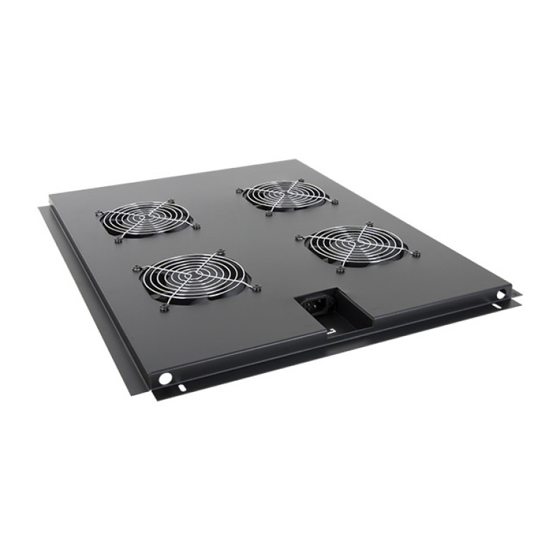 Вентиляторная панель предназначена для искусственной вентиляции оборудования внутри сетевого шкафа, а также снижения запыления аппаратуры. Устанавливается в верхнюю панель (крышу) серверного шкафа. Панель оснащена четырьмя вентиляторами.