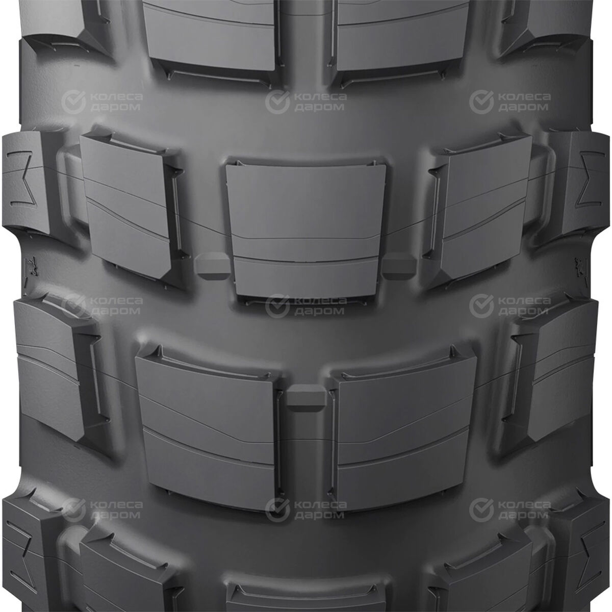 Повышенные сцепные характеристики на всех типах дорожного полотна получаются за счет агрессивного рисунка протектора. Благодаря шашкам мотоцикл может развивать высокую скорость без потери управления, уверенно проходить повороты, тормозить.