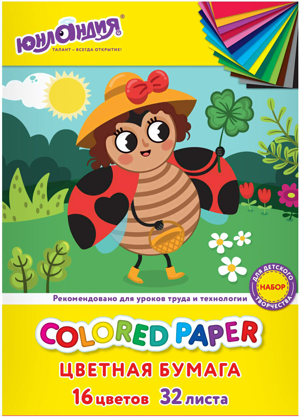 Набор цветной бумаги Юнландия Офсетная Божья Коровка / 115638 (16цв)