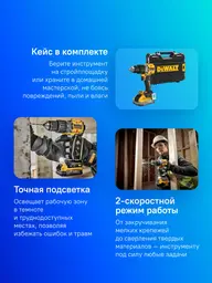 • Комплект поставки Дрель-шуруповерт, аккумулятор 5 Ач - 2 шт., зарядное устройство, кейс TSTAK.