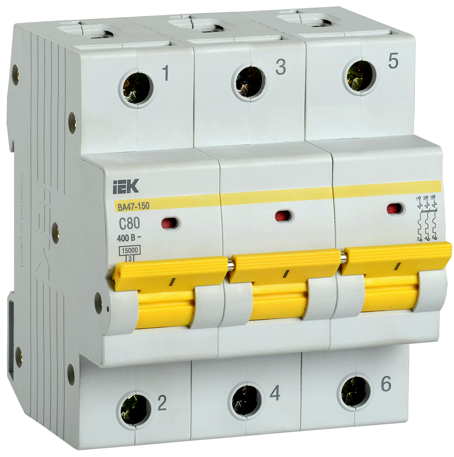 Автоматический выключатель ВА47-150 3Р 80А 15кА х-ка C IEK