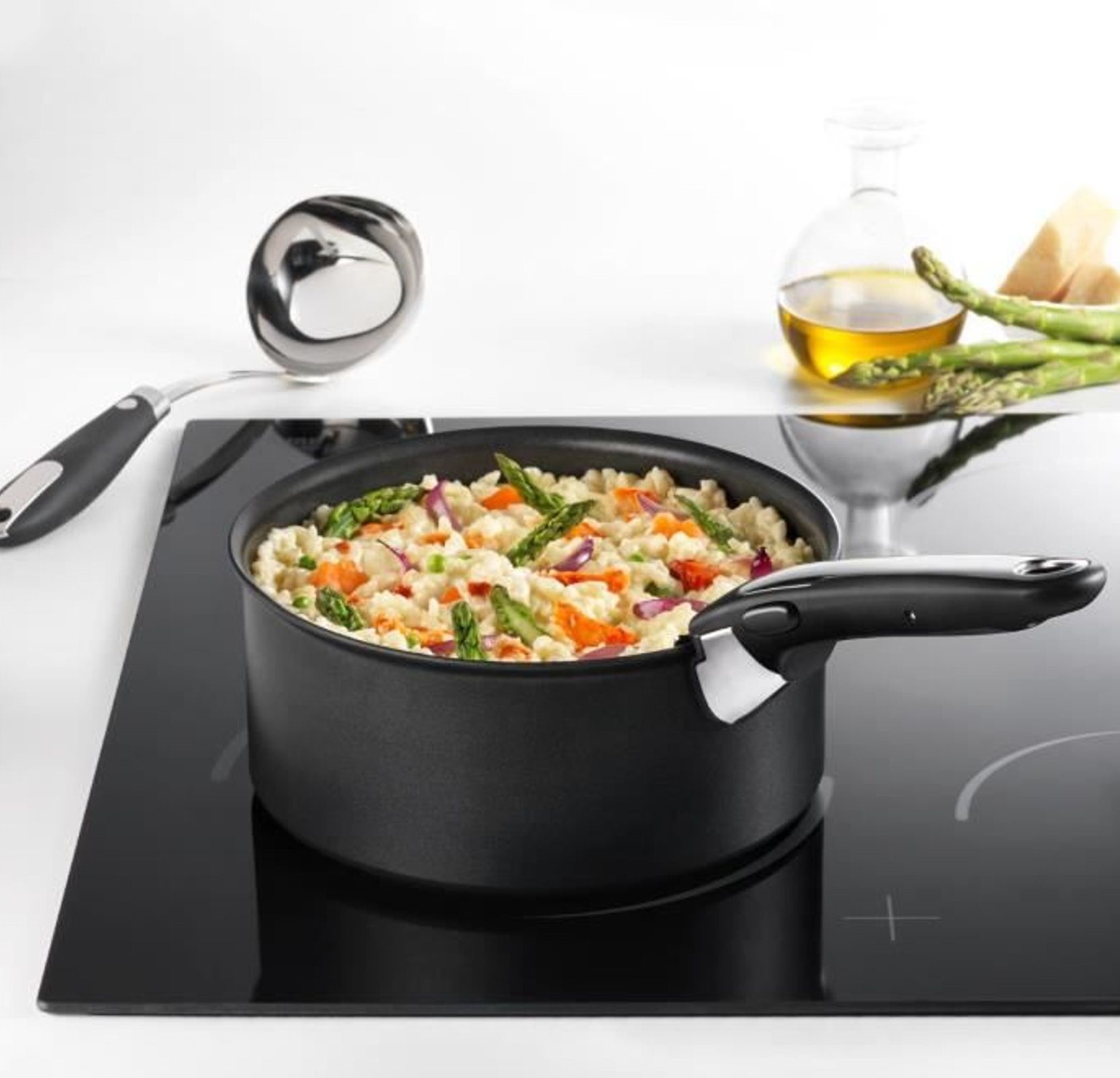 • Дополнительно совместимость с индукциеймытье в посудомойкеиспользование в духовкесъемные ручки