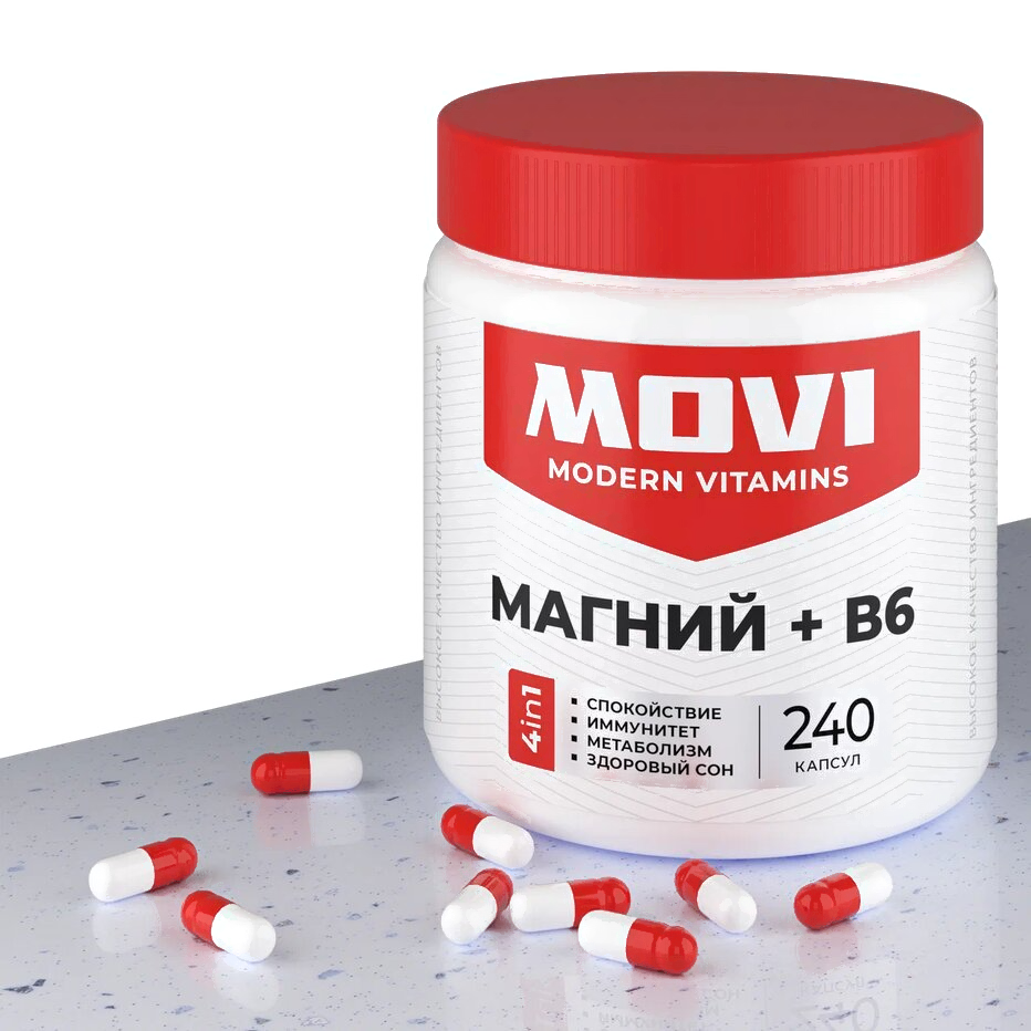 Витаминно-минеральный комплекс Movi Магний с Витамином B6 (240 капсул)