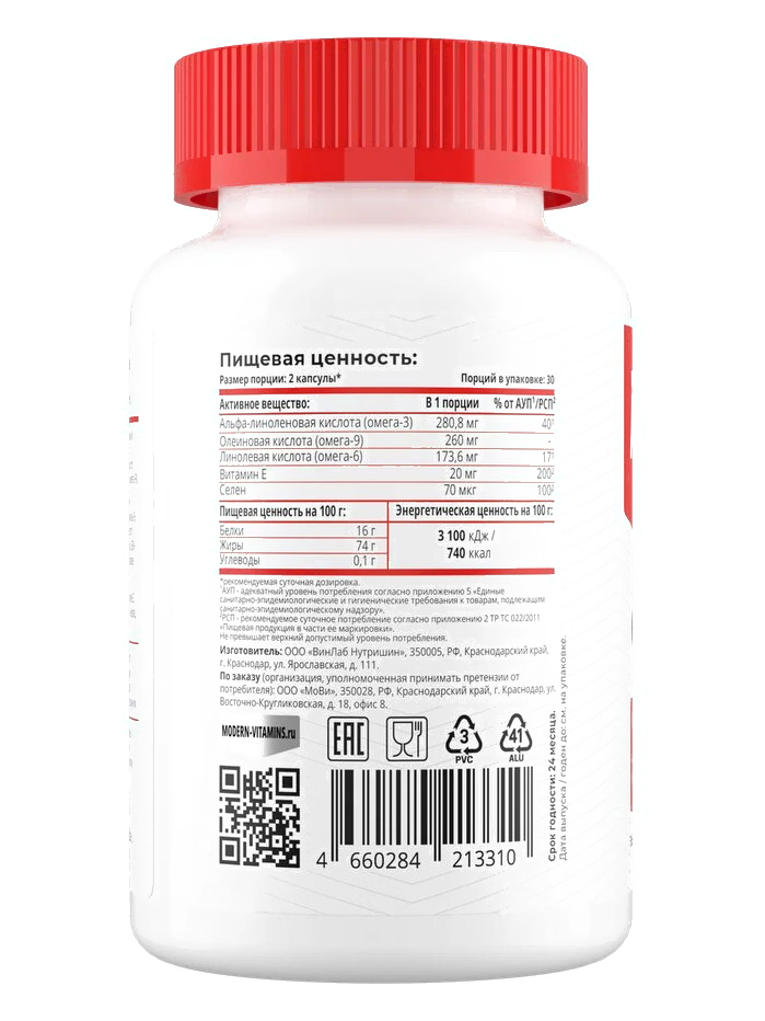 Жирные кислоты Movi Omega 3-6-9 с селеном и витамином Е (60 капсул)