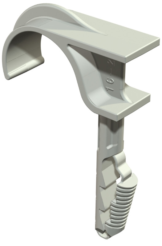 Нажимной фиксатор для крепления проводов и труб к стене и потолку, а также для укладки гибких труб на бетонном и бесшовном полу. Одинарные нажимные фиксаторы заменяют скобы с гвоздём в бетоне и в газобетоне. Преимущество нажимных фиксаторов в том, что их нужно просто вставить в отверстие. Дюбели и винты не требуются.