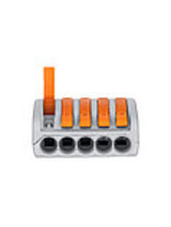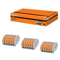 Соединительная клемма СК-415 (2,5 мм²) от TDM, модель SQ0527-0003, предназначена для надежного соединения проводников в электрических системах. Эта клемма имеет пять зажимов и подходит для подключения проводов с поперечным сечением от 0,1 до 2,5 мм². Она оснащена рычажком для удобства установки и демонтажа проводников, что упрощает работу и повышает надежность соединения.