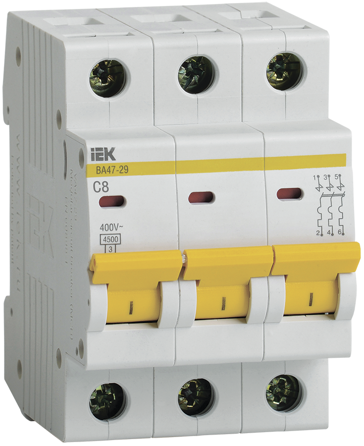 Автоматический выключатель ВА47-29 3Р 8А 4,5кА х-ка С ИЭК