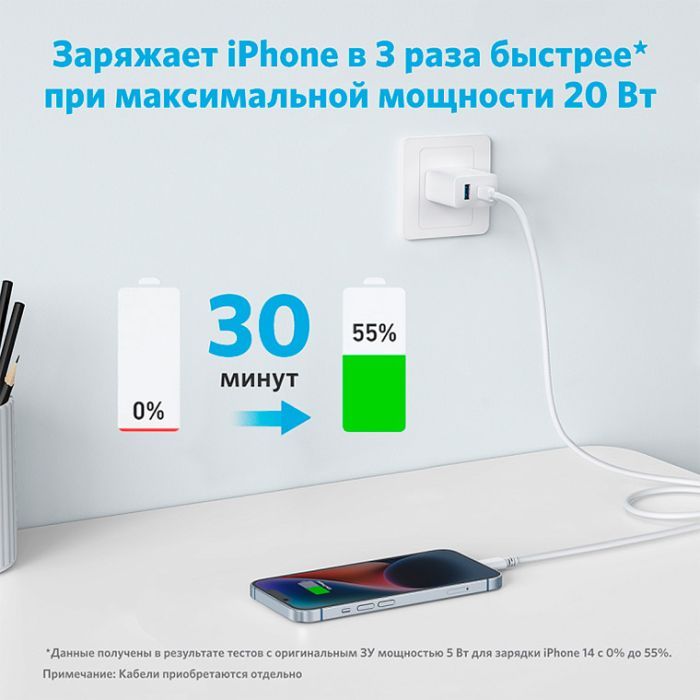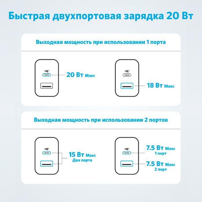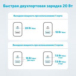 • Модель PowerPort 20W USB-C + USB-A White