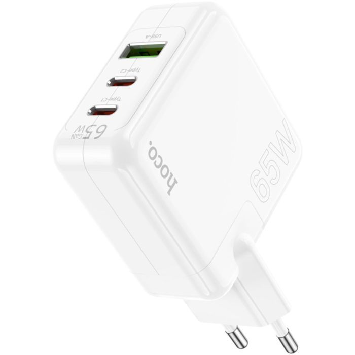 Зарядний пристрій HOCO C115A Header 2xUSB-C PD65W + 1xUSB QC3.0 GaN White (6931474798312)