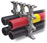 Предназначен для закрепления труб, препятствие смещению, сохранение расстояния между гибкими, жесткими, дренажными гофрированными двустенными трубами одного диаметра.
