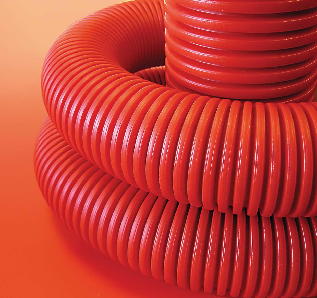 DKC Двустенная труба ПНД гибкая для открытой прокладки д.63мм, SN13, ПВ-0, УФ, с протяжкой, в бухте 50м, цвет
