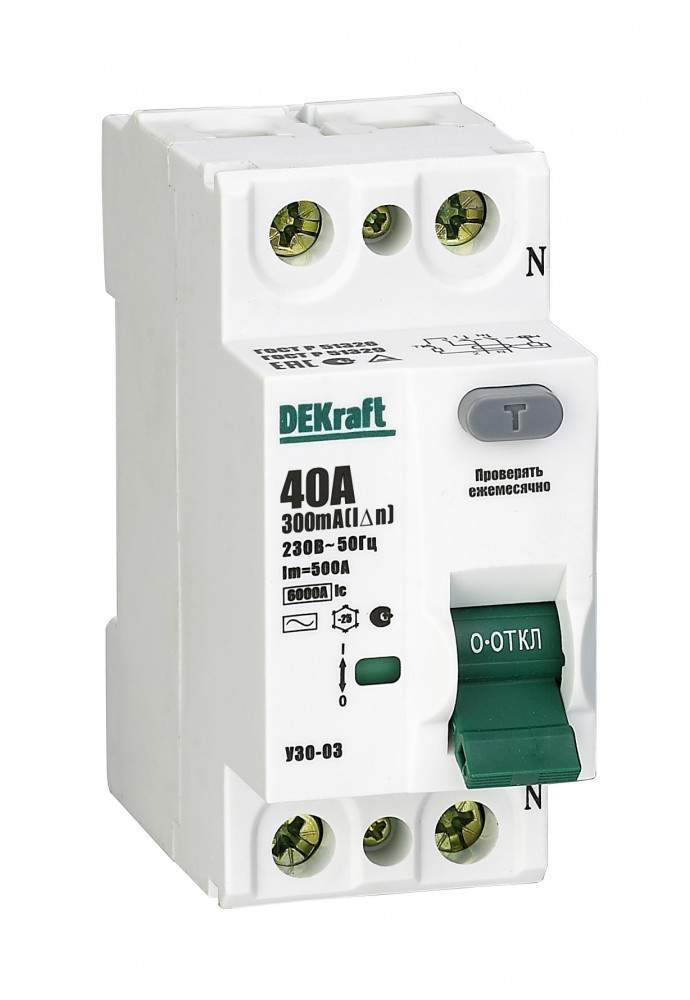 Выключатель дифференциального тока серии УЗО-03 DEKraft; 2P; номинальный ток 80; ном.дифф. ток 300 мА; электромеханический; тип дифференциального расцепителя - AC; ширина – 2 мод. х 18 мм; монтаж – на DIN-рейку. ВДТ устанавливаются в сетях напряжением до 400 В пер.тока. ВДТ применяются для защиты электроустановок от риска возникновения пожаров вследствие утечек тока. Конструкция устройств позволяет эксплуатировать их даже при низкой температуре.