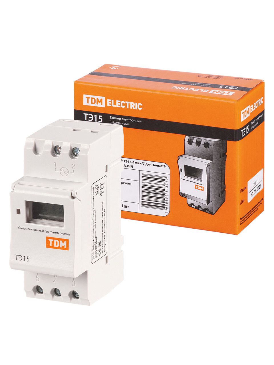 Таймер электронный на DIN-рейку ТЭ15-1мин/7дн-16on/off-16А-DIN от TDM ELECTRIC, модель SQ1503-0005, предназначен для монтажа на DIN-рейку и обеспечивает точное управление электроприборами с помощью электронного программирования. Этот таймер позволяет настраивать включение и выключение устройств по заданному расписанию в течение недели.