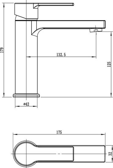 - Длина (вылет) излива 132.5 — 132.5 мм