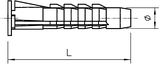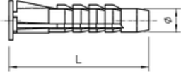Используется также в качестве дюбеля для полых стен, с манжетом для защиты от проскальзывания (не для дюбеля 12 мм), 4 установленные стабилизирующие поверхности принимают на себя крутящий момент. Необходимая средняя длина винта = длина дюбеля + толщина детали + 1 х диаметр винта. Сила вытяжки подходит к шурупам с большим диаметром, нужно принимать во внимание коэффициент безопасности.
