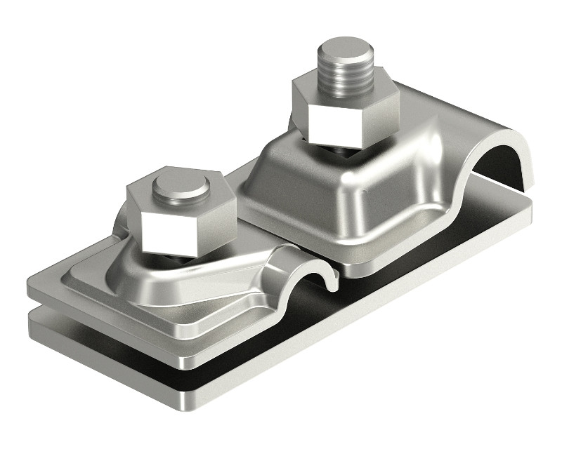 Пластина для соединения токоотвода OBO isCon® с молниеприемной мачтой Ø 16 мм; протестирована током до 150 кА (класс молниезащиты II).